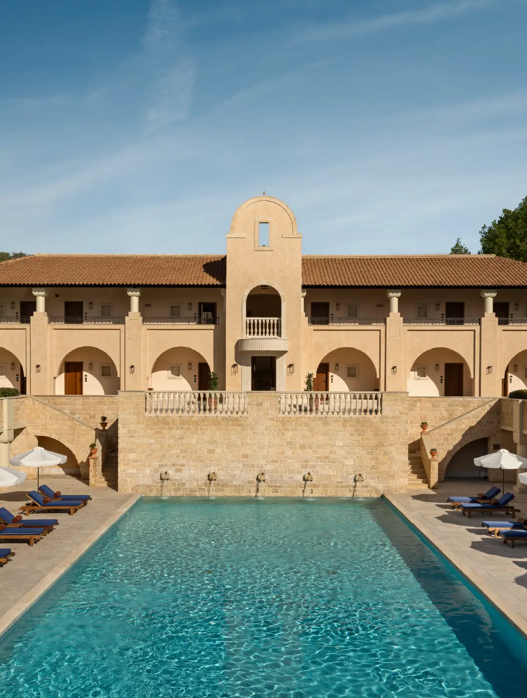 Three pools surrounded by immaculate gardens create an oasis of calm for guests to dip their toes in, while a lavender-scented path leads directly to a sandy, sheltered cove.